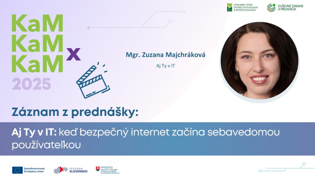 Na našom YouTube kanáli je dostupný zostrih prednášky Mgr. Zuzany Majchrákovej, projektovej manažérky Aj Ty v IT, v ktorej približuje, ako sa v online priestore prepája osobná bezpečnosť, duševné zdravie a digitálna gramotnosť.