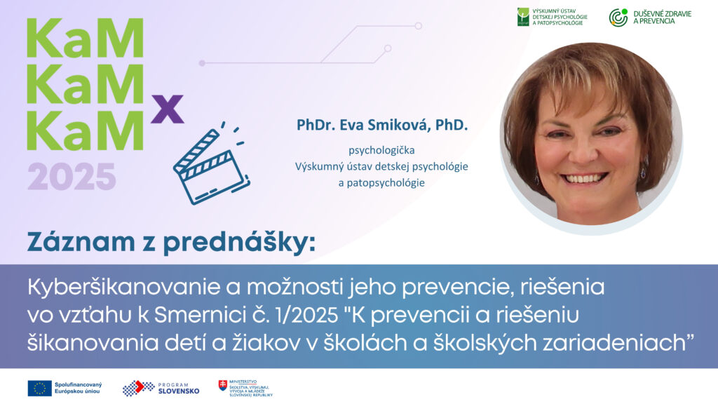 V jej prednáške z 3xKaM s názvom „Kyberšikanovanie a možnosti jeho prevencie, riešenia vo vzťahu k novej Smernici č.1/2025“ sa dozviete napríklad aj to, nakoľko rozšírené je kyberšikanovanie podľa najnovšieho výskumu ESPAD (2024), aké má jedinečné znaky, o hlavne, ako je možné sa pred ním chrániť.