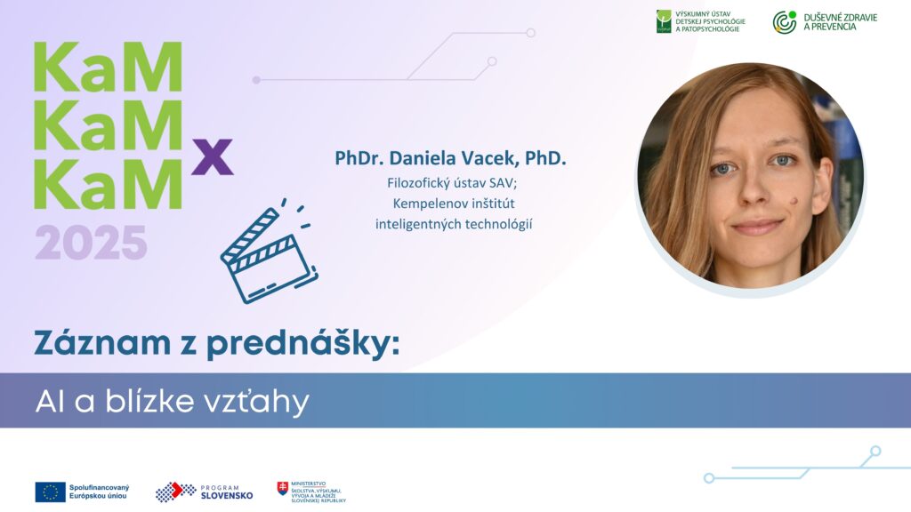 PhDr. Daniela Vacek, PhD. sa v nej venuje otázke blízkych vzťahov medzi ľuďmi a umelou inteligenciou. Poukazuje na rozpor medzi filozofickými teóriami, ktoré hovoria, že AI nedokáže byť priateľom či romantickým partnerom, a realitou, kde si ľudia začínajú takéto vzťahy budovať.