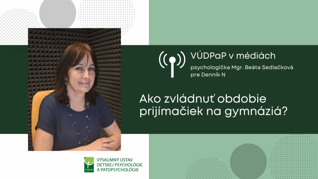 Psychologička VÚDPaP Beáta Sedlačková sa vyjadrila pre Denník N k téme „Ako zvládnuť obdobie prijímačiek na gymnáziá: Uznajte deťom únavu, dajte im bezpečie a nebuďte zdrojom tlaku„.