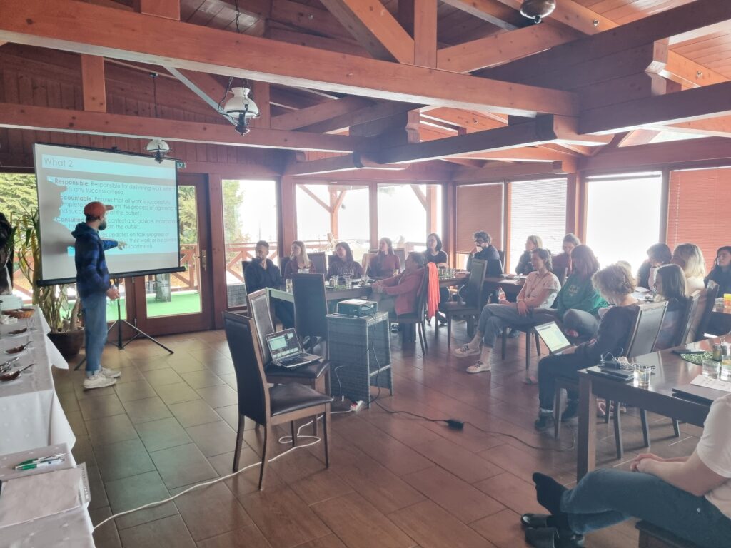 Ďalšiu fázu projektu sme zahájili na „polceste“ medzi Bratislavou a Košicami – v Dolnom Kubíne, kde nás okrem intenzívnych pracovných dní čakal aj čerstvo napadaný sneh. Ťažiskom stretnutia bola participatívna tvorba finálnej podoby reportov pre naše pilotné školy. Tieto správy obsahujú prvé výsledky z meraní, ktoré sa na školách realizovali od novembra 2025 a predstavujú zdroj dát a informácií o stave školy s ohľadom na problematiku PUŠD. Ich cieľom je pomôcť školám v spracovaní svojej vízie a v rozhodovaní, kam nasmerovať svoju energiu a pozornosť. Naši oblastní koordinátori a oblastné koordinátorky sa už pripravujú na sprevádzanie škôl procesom akčného plánovania, ktoré sa rozbehne v najbližších týždňoch.