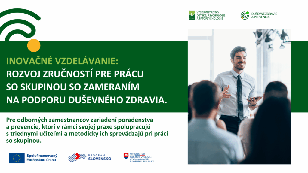 Pre veľký záujem a pozitívnu spätnú väzbu z predchádzajúcich vzdelávaní otvárame začiatkom roka 2026 dve nové vzdelávacie skupiny pre odborných zamestnancov zo zariadení poradenstva a prevencie.