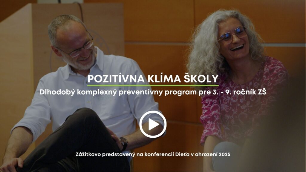 Na konferencii Dieťa v ohrození 2025 bol účastníkom zážitkovo predstavený dlhodobý preventívny program Pozitívna klíma školy, určený pre žiakov 3. až 9. ročníka ZŠ. Program vytvorili Mgr. Michaela Syčová a Mgr. Dávid Chmelár, ktorí sa systematicky venujú podpore vzťahov a psychickej pohody žiakov v školách.