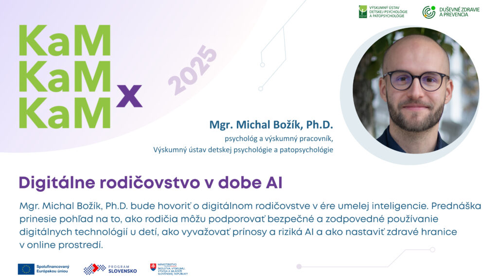 Michal Božík bude hovoriť o digitálnom rodičovstve v ére umelej inteligencie. Prednáška prinesie pohľad na to, ako rodičia môžu podporovať bezpečné a zodpovedné používanie digitálnych technológií u detí, ako vyvažovať prínosy a riziká AI️ a ako nastaviť zdravé hranice v online prostredí️.